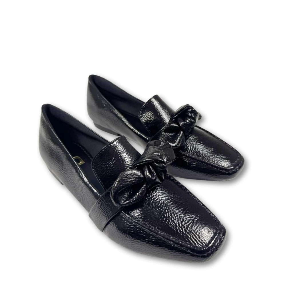 MOCASSIM CONTRAJE SINTETICO VERNIZ COM LAÇO PRETO.